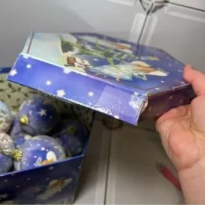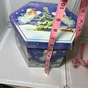 christmas themed. lot of 11. the box top is a little damaged. please see pictures