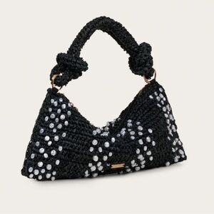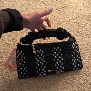 Elegant black handbag with white bead detailing. Perfect for any occasion. new with tag
