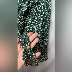 Chic green dress with floral pattern. Features long sleeves and a flattering waist tie. Ideal for versatile styling! Zara size Medium