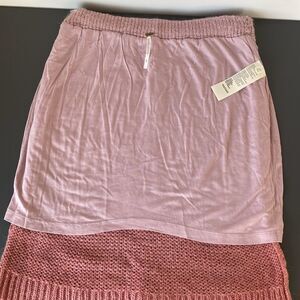 Free People Blush & Coral Pink Ombré Knit Pencil Skirt Sz M Boho Chic Coastal