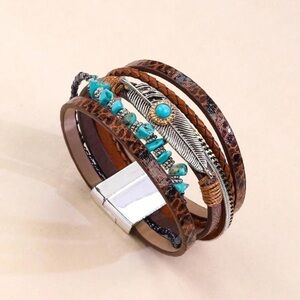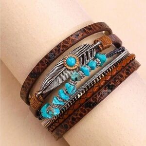 ✨Bohemian faux Leather Bracelet with Turquoise Accents