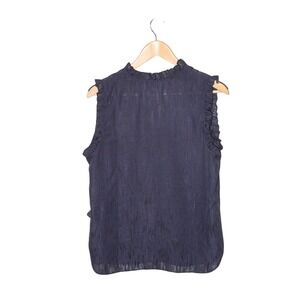 Joie Sheer Metallic Sleeveless Shirt Sz M Blue Silver Ruffle