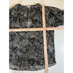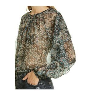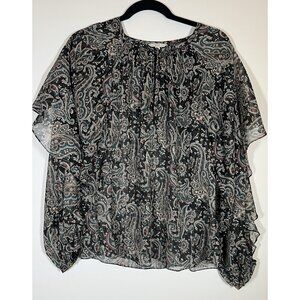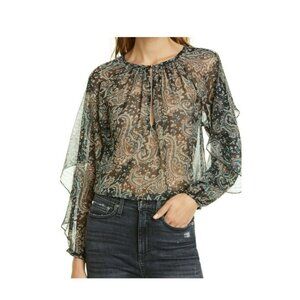 JOIE Kriston Paisley ruffle chiffon blouse black sheer whimsigoth L flowy caviar