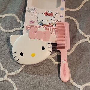 Adorable Hello Kitty mirror with a pink handle. Ideal for quick touch-ups.