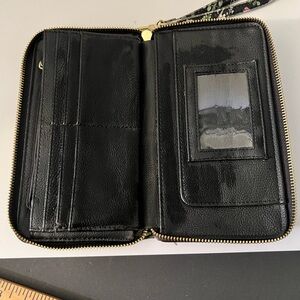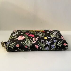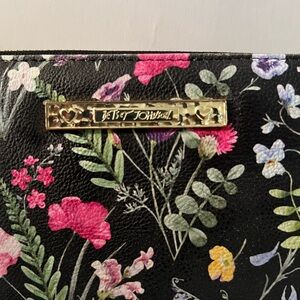 Betsey Johnson Watercolor Black Floral Large Clutch Zip-Around Wallet