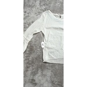 Anchor Blue Blouse Pullover Women's Size Large White Long Sleeve Semi-Sheer Flaw