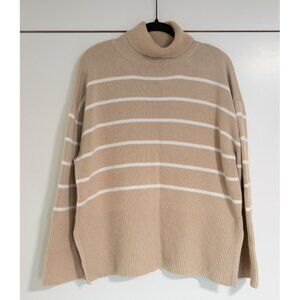 Lake Madeline Striped Cotton Turtleneck Sweater Driftwood Ivory Size Small