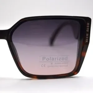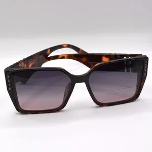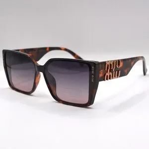 Women’s MIU MIU polarized sunglasses featuring a classic tortoise brown frame and grey-to-purple gradient lenses. Made in Italy with signature MIU MIU engravings on the top left lens, both lenses, and each temple.