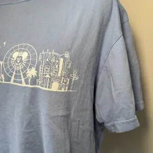 Disney Disneyland California Adventure Light Blue and White Graphic Tee Shirt