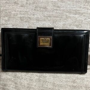 Elegant black leather wallet by Salvatore Ferragamo. Multiple card slots and secure closure.
