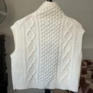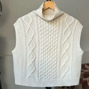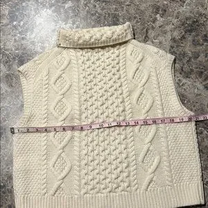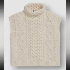 Polo Ralph Lauren Cable Knit Aran Turtleneck Cream Tank Sleeveless Sweater. Wool and Cashmere blend.