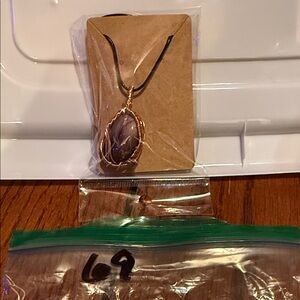 Artisan Purple Stone Necklace with Gold Wire