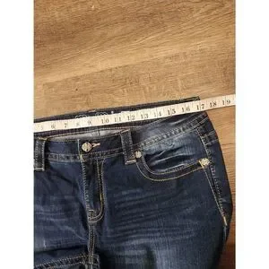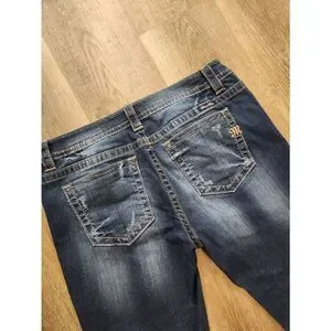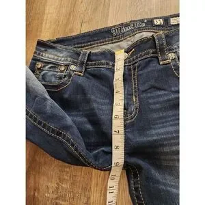 Miss Me 'skinny' aztec embroidered womens 31x27 medium wash multicolor. good pre-owned condition no stains no holes measurements provided in pictures are approximate please check measurements for proper fit as size can vary from age and washing