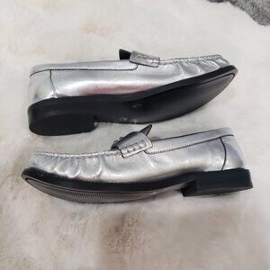 Coach Jolene Shiny Silver Metallic Penny Loafers Women's Size 6, 6.5, 9, 10 NEW Classic