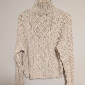 Zara cable knit wool-blend sweater in cream. Medium weight yarn, very warm and cozy. Fabric composition is 30% wool.