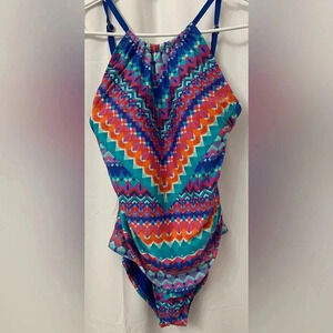 Women’s JANTZEN FARAH One Piece Crisscross Shirred Sides Swimsuit Size 8 EUC