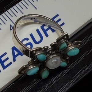 Turquoise & Moonstone Snowflake Ring - 925 Sterling Silver - Adjustable