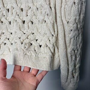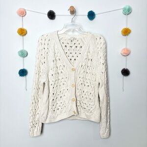Neutral off-white cardigan with stitched sequin glitter in the knit. Cable knit stitched. Size large, fitted. Great condition!