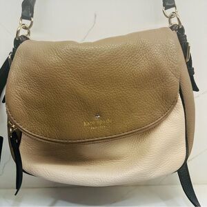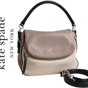 Chic Kate Spade shoulder bag in taupe and black. Perfect for versatile styling. Elegant and timeless design.