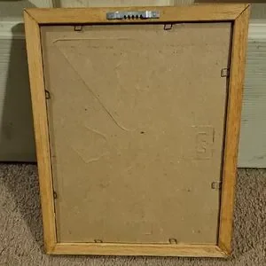 Charming vintage cross-stitch art featuring a jiminey cricket holding colorful balloons. Framed in a wooden frame. Perfect for adding a playful touch to any room gently used pls look at all pics smoke free & pet free home