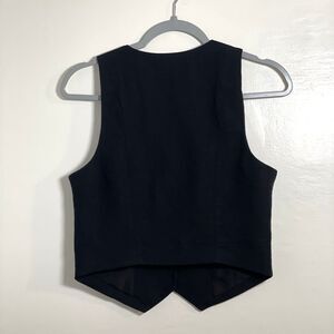 H&M Women's Linen Blend Black Button Down Vest Size Small Preppy Academic Casual
