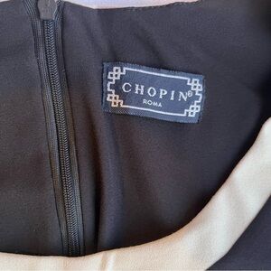 Sleeveless dress by Chopin Roma, size M. Navy blue color with a white neckline detail.