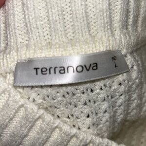Terranova Cherie sweater in excellent used condition. Cream color with a red logo and mock neck. Made of acrylic. See photos for measurements. Offers welcome. #terranova #sweater #mockneck #cream #logo