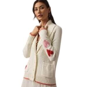 ANTHROPOLOGIE MAEVE Heart Cardigan Sweater 3X Pink Red Cream Cottagecore Twee