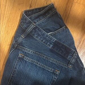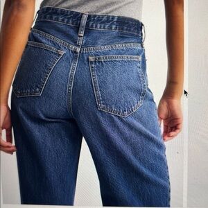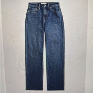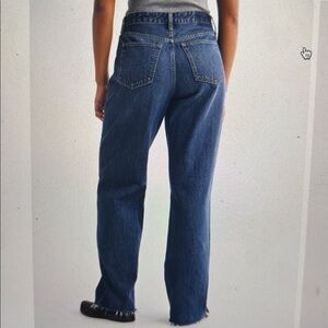 Abercrombie Drapey Rigid loose jean in color Medium with raw hem. Worn once. Size 30s