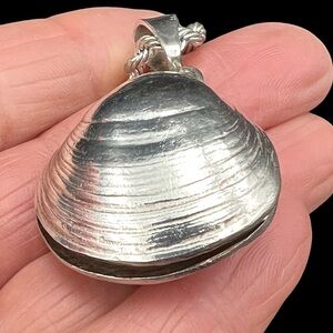This is a really cool piece, as the clam shell holds a silver ball inside that makes sound when moved. I included a video along with pics.
