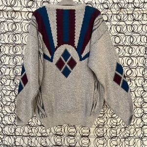Vintage 90s Oakton Limited Muted Earthy Boho Sunset Maroon Blue sweater LG TALL
