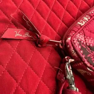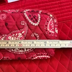 Vera Bradley Red Quilted Tote Bag Polka Dot Lining Toggle Closure w Wristlet Set