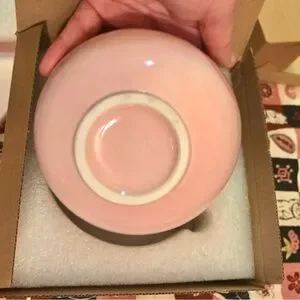 Tea bowl with spout also included so you have everything you need to have a personal tea ceremony. The spout makes it easy to pour into a mug for a matcha latte, and has a cute cat on it in a pink to compliment the pink sakura pattern. All new in box!