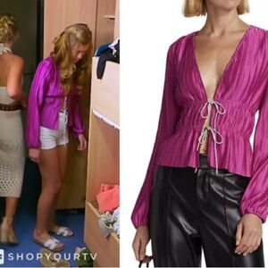 Tags: date night, sexy top, date night outfit, night out, going out top, plunge neckline, deep v, tie front top, tiefront, hot pink, maximalist, maximalism, colorful top, bright, neon, sparkly top, rhinestone, embellished, pretty, Barbie, Barbiecore, influencer favorite, Brianna, below deck, season 6 episode 13, briana, girl from below deck, Lara, shop your tv, below deck down under