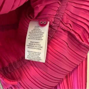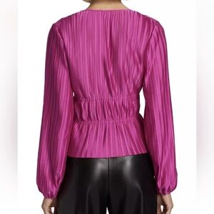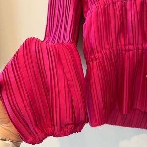 Wayf Payton Tie Front Long Sleeve Rhinestone Sparkly Tie Front Pleated Blouse Top in Hot Pink