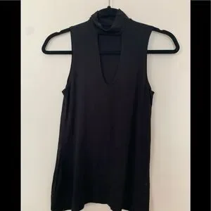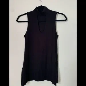 Groceries Apparel Black KeyHole Mock Neck Sleeveless Top Organic Cotton Blend XS