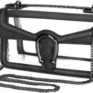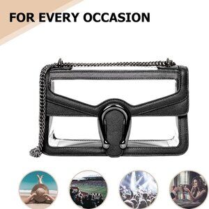 Features: This mini yet spacious clear bag is perfect for keeping your essentials like phone, keys, and lipstick within easy reach. Made from heavy-duty 1mm thick PVC with vegan leather trim, it combines luxury with durability. The magnetic closure adds a touch of elegance, while the sliding chain strap offers versatile wear as a shoulder or crossbody bag.