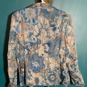 Chic TanJay blazer with a blue and gold floral design.