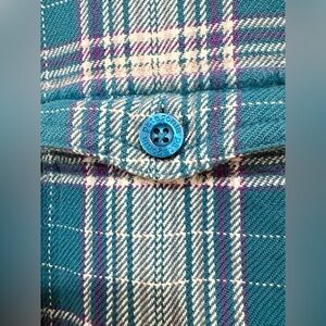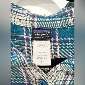 Patagonia Plaid 1/4 Button Down Shirt in Teal/Green | Women’s Size 8