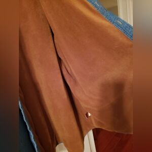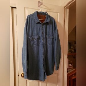 It's not new but it's in EXCELLENT CONDITION I think he wore it twice Like everything else it We'll keep your nice warm it's so soft, I'm not gonna tell you it's light it's definitely a winter coat you'll stay warming it's got like a fleece inside look at the pictures and video it's a 3 X LARGE TALL , It has 2 pockets in the front no other pockets that I know of that buttons all the way up and down It's a beautiful denim so soft and like I said this will keep you warm I'll be posting other things up put to a bundle For a great. It's blue denim on the outside and like a Brown light Brown on the inside Don't hold me to the color on the inside But it's beautiful in spotless my eyes are the greatest but it is beautiful jacket trust me. And it's like new no tags like I said he wore twice