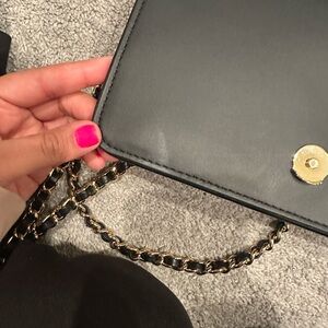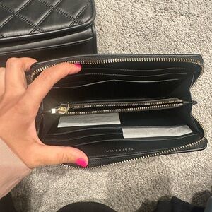 Chic black quilted design. Includes matching wallet. Perfect for stylish outings.