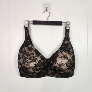 Tivoglio Black Lace Wireless T-shirt Bra Size 38H Wire Free Lightly Lined Sexy
