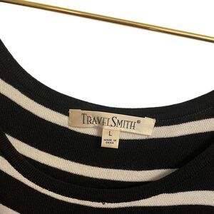 TravelSmith Sleeveless Scoop Neck Striped Knit Dress Navy White Large