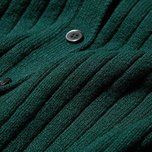 UNIQLO Ribbed Sweater-Knit Polo Short-Sleeve Button-Up Cardigan (Green)