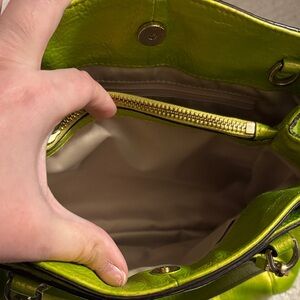 Stylish Coach shoulder bag in bright metallic lime green leather. Perfect for a bold fashion statement. Pics don’t do justice. Missing shoulder strap Bruce great price !