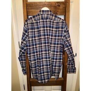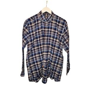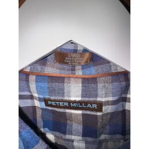 Peter Millar Mens Plaid Button Down Shirt Large Blue White Long Sleeve Cotton