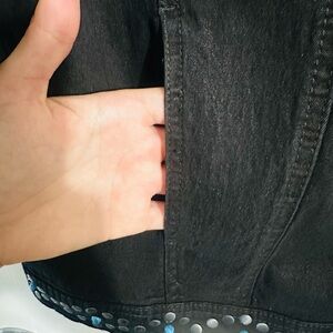 DG2 Diane Gilman Jean Jacket Women XL 3/4 Slv Studded Turquoise Rhinestone Black