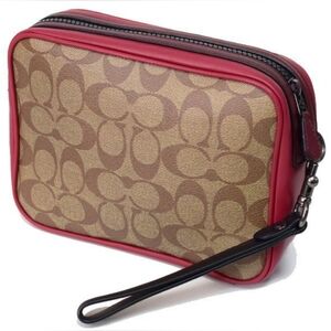 Coach Terrain Pouch Colorblock Signature Canvas Leather Pouch Bag Pu Unisex