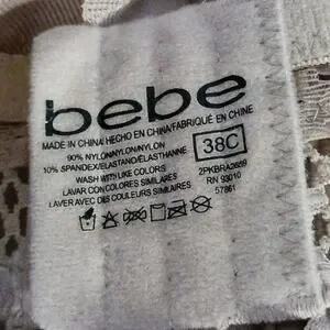 Gorgeous! Lined. Lace Cups. Lace Fringe Trim. Gentle Lift. Adjustable Straps. Laced bra with bebe sporty logo straps. Strong 3 hook back.