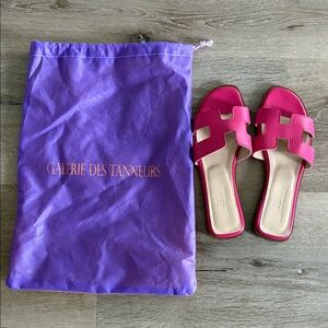![EUC [Galerie des Tanneurs] Pink Leather H Slide Sandals Moroccin Made Womens 7.5 - Picture 2 of 13](https://di2ponv0v5otw.cloudfront.net/posts/2025/12/20/694794c70015429420b1d8d7/m_695aae29a9a4482b6721bae3.jpg)